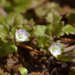 イヌノフグリは小型の越年草です。ヨーロッパ原産と推定され、北半球の温帯~暖帯に広く分布する帰化植物です。直径2mmくらいの小さな花ながら、淡いピンクに紅紫色の筋が入って可愛らしいものです。ヨーロッパに見られる基準種のV. politaは花がやや大型で、花冠裂片が青白色です。このため変種「lilacina(花がライラック色の)」とされます。一方ユーラシア産の変異の範囲内だとして基準種に含める見解(『改定新版 日本の野生植物』など)もあります。かつては日本のどこでも見られたらしいのですが、後からやって来たオオイヌノフグリ(ヨーロッパ原産)に駆逐されて大変珍しい植物となってしまいました。環境省のレッドリストでは絶滅危惧II類(VU)に指定されています。